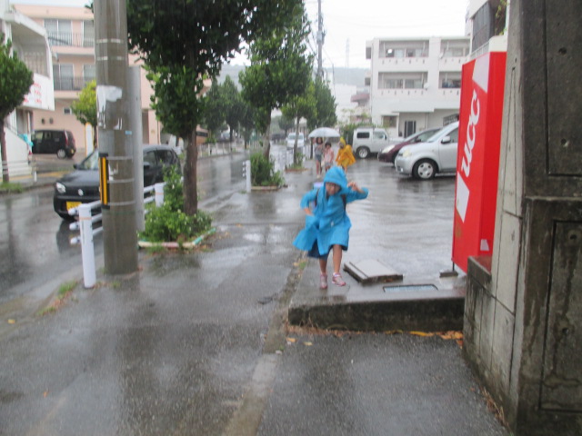 登校時 雨が