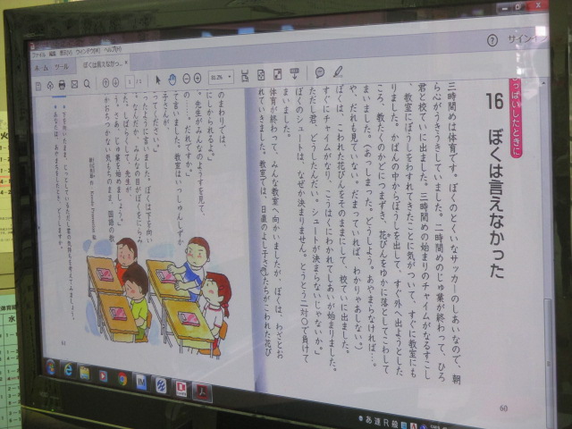 資料は、花瓶を割った過ちを犯してもなかなか正直に言い出せない主人公の話材です。子ども達は主人公の心情の変化をとらえたり、自分自身に置き換えて考えてみたりしていました。正直に行動することについて席を離れて感想交流も行われました。