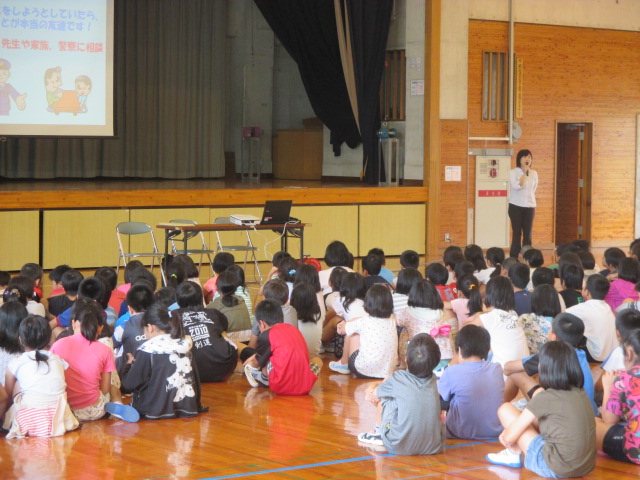 非行防止教室が開催されました。講師は那覇警察署少年課の方です。内容は万引きといじめについてです。