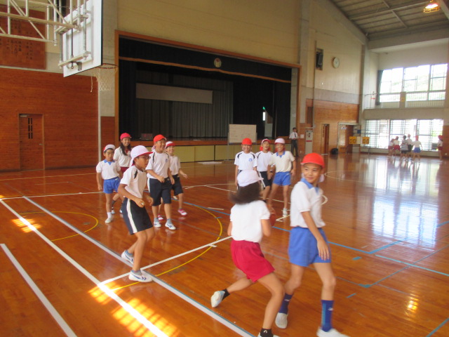 2校時体育館では5年生によるバスケットボールの授業がありました。