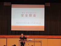 本校では安全朝会を年間2回行い安全教育とその啓発に努めています。