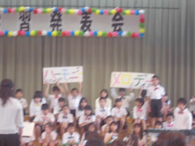「音楽の力」5年生。作品はこういうふうにしてできるんだというこわかるやすく伝えた5年生。段階的に音を加え、ちがいを出し表現する内容構成は見事としかいいようがありません。