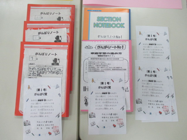 子ども達は家庭学習ノートを仕上げると,校長室に届けます。校長生生が中身を見て