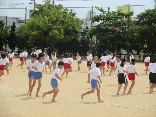 テーマを達成するかのごとく5年生が組み体操の練習をしています。技というよりは隊形移動を重点に行っていました。一人一人がすばやくないと美しさはでません。イメージを持って,最後まで全力で子ども達は活動していました。