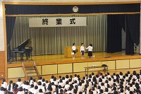 学年発表、歌、お話、表彰などを行いました。式服がそろい、節目の式らしさが出た終業式でした。