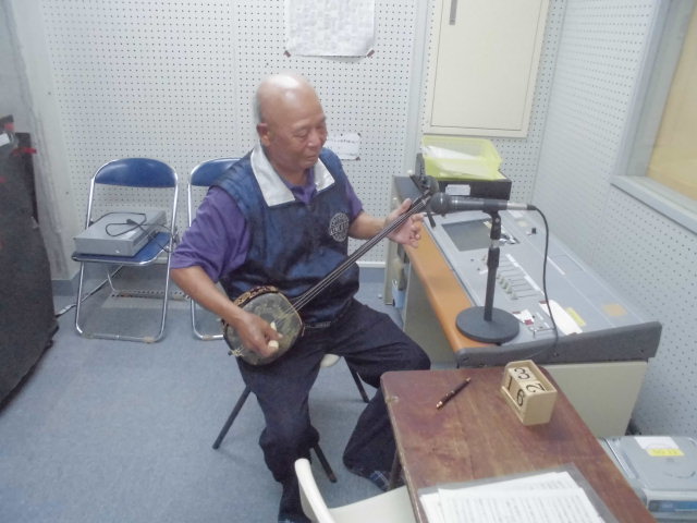 最後には必ず写真のように三味線で歌を歌ってくれます。子どもたちに人気なのは