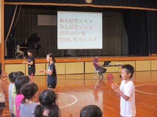 〇とか×とかの記号があって、それぞれ動作も決まっていて、ボディパをおこないました。