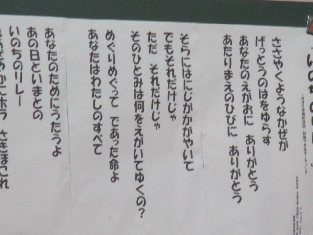 そのあと「いのちのリレー」という歌が紹介されました。