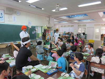 食育ロボも喜んで、各クラスの給食時間を見守っていました。