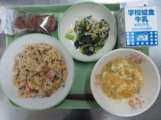 ●「中華おこわ」は、本校で炊飯し、味付けしたものです。