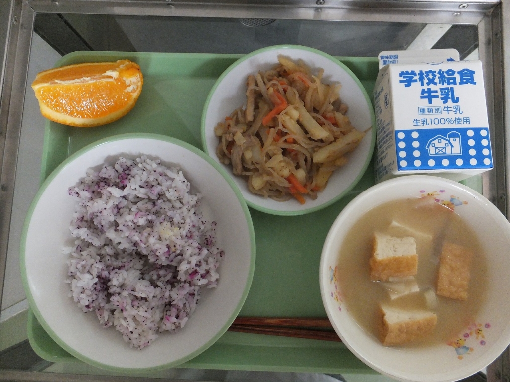 ・牛乳 ・ゆかりごはん ・豚汁 ・じゃがいものキンピラ ・オレンジ