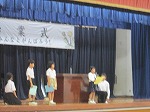 今回は学年毎に校歌を歌う校歌コンクールです。審査員の先生方(校長・教頭・教務・図書館司書・授業改善)が