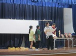 今回は学年毎に校歌を歌う校歌コンクールです。審査員の先生方(校長・教頭・教務・図書館司書・授業改善)が