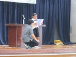 姿勢・発声(笑顔)・声量(どこまでとどけられるか等)の点から審査をされました。