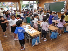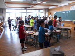 特別支援学級の子どもたち全員が集合して「わくわくタイム」が行われました。今日は「皿がえし」と「風船ふわふわ」の2つのゲームを子どもたち同士が交流しながら、楽しく活動していました。体を動かしながら、色々考えたり、コミュニケーションを取ったりすることで子どもたちの成長につなげていきます。次回はどんな活動がまっているかな?