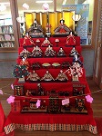 毎年ひな祭りが近づくと図書館前にお目見えするひな壇飾り