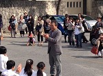発表後は市民会館前の広場で応援して下さったお父さん、お母さんへ「ありがとう」の気持ちを伝えました