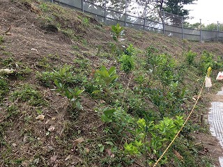 植樹をしている斜面は草刈り作業がしづらい場所です