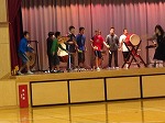 6年生の楽器隊の演奏と楽しいかけ声にあわせて歌いました