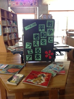 ・図書館前の掲示、平和に関する本のコーナーの設置