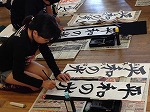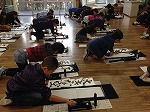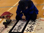 教室、体育館は静まりかえり、一文字一文字丁寧に文字を書く姿が見られました