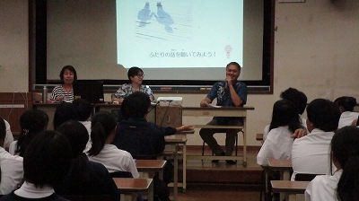 おきなわCAPセンターから講師をお招きして、「思春期の心と体プログラム」を実施しました。思春期=反抗期=成長期、のお話を聞いたり、ロールプレイを通してのデートDVの認識や性について学んだりしました。みな真剣に参加しました。