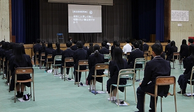 いよいよ受験シーズン!高校入試の面接対策として、3年生のマナー講習会を行いました。めずらしく!? 緊張の面持ちの3年生。講習会で学んだことを本番で活かしてほしいものです。