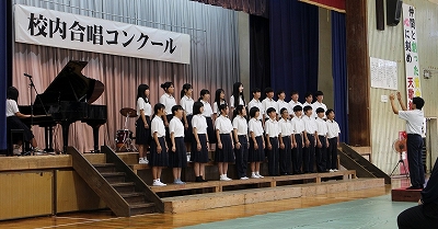毎年恒例の校内合唱コンクール♪ 『仲間と創った黄金の歌声 心に刻め 天歌統一』が今年のテーマでした。どの学級も金賞、さらにはグランプリを目指し、まとまりのある美しいハーモニーを披露しました。中学校生活最後の学校行事『合唱コン』に臨む3年生の姿勢は、特に素晴らしいものでした。グランプリの3年2組は、なはーとでの地区音楽発表会に参加します。