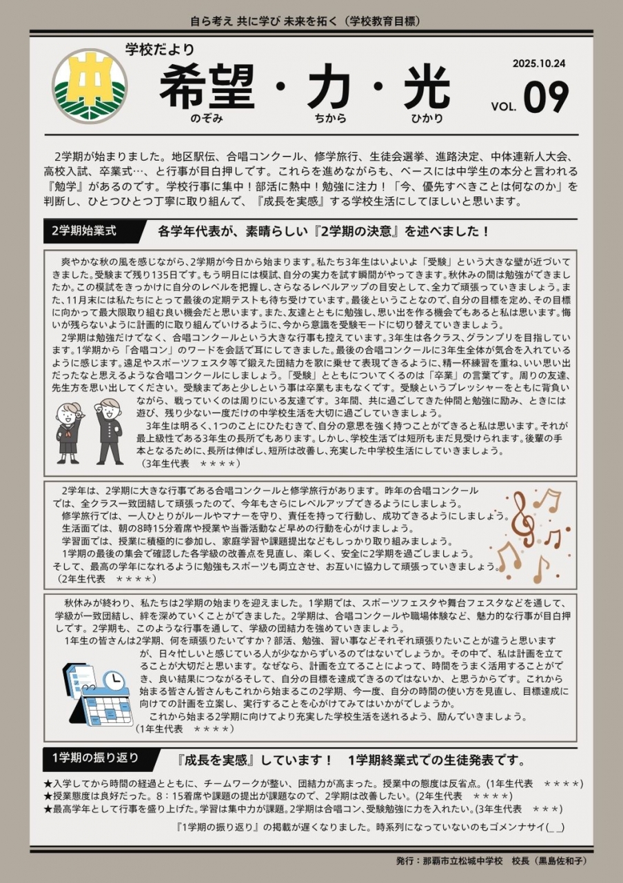 R7年度学校だより『希望 力 光』⑨ 2025/10/24