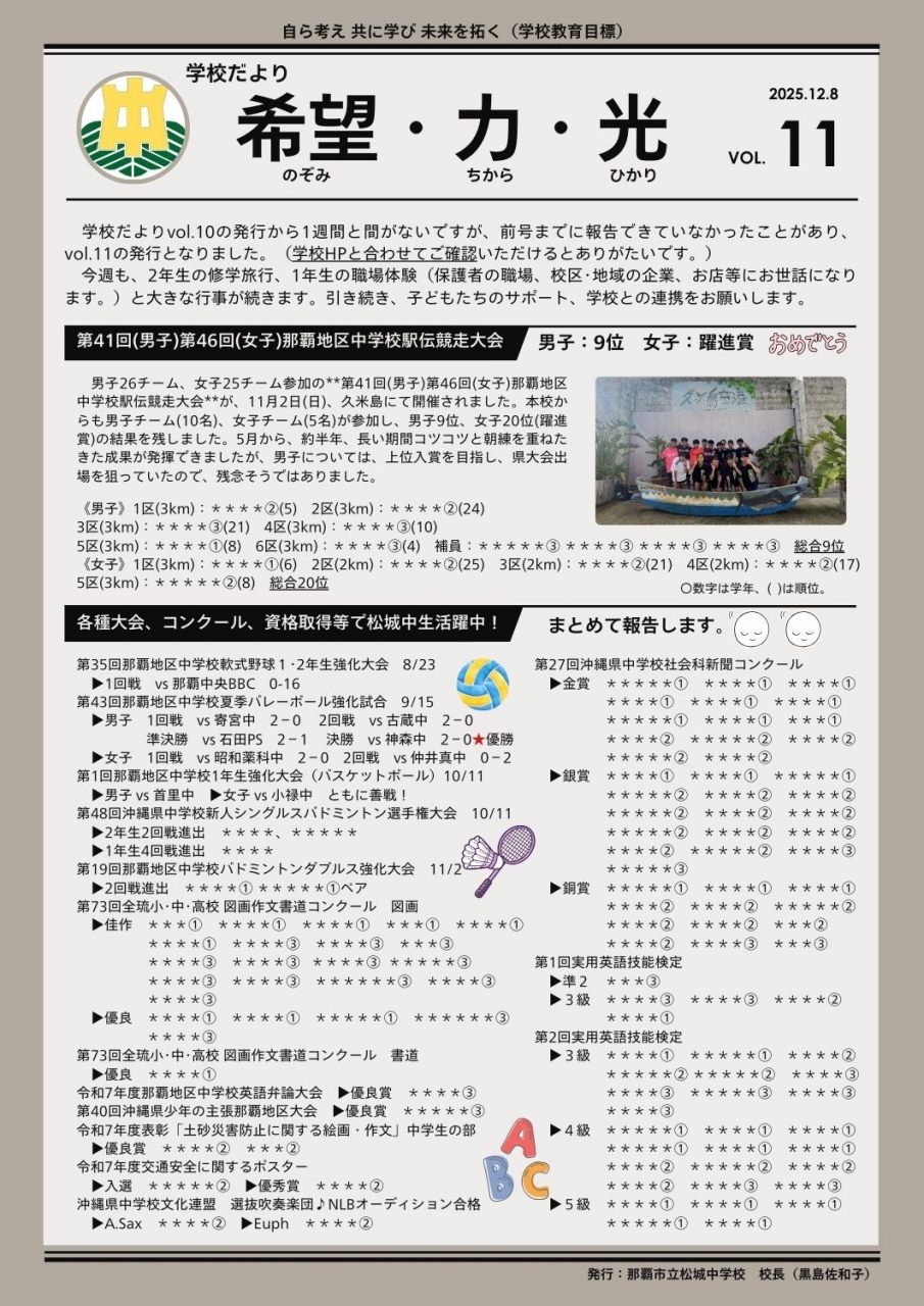R7年度学校だより『希望 力 光』⑪ 2025/12/08
