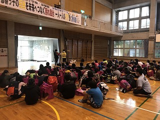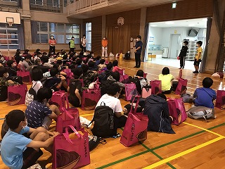那覇小学校に戻ったみんなは、 体育館にて解散式を行いました。 代表のあいさつでは、