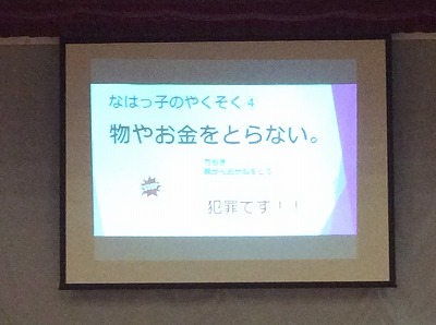 楽しい冬休みを間近にして、子ども達も「ウキウキ・ワクワク」。そういう時に心に隙が生まれるよ。今回の朝会では、生徒指導主事の榮山教諭によるお話で「なはっ子の5つの約束」を児童全員で確認しました。きまりを守って楽しい冬休みが過ごせるよう、学校・家庭・地域でなはっ子を見守っていきましょう。