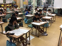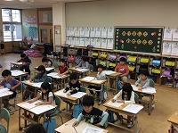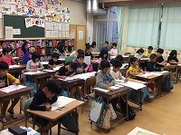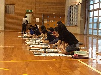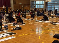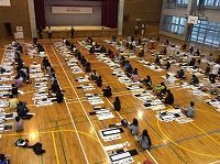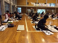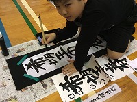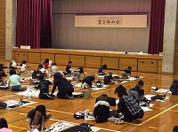 今年も、新春の喜びや願い、そして決意などを力強く表現することを目標に、書き初め会を開催しました。低学年は教室で、中学年・高学年は体育館で、それぞれ硬筆・毛筆の書き初めを行いました。どの子も真剣に正しい姿勢で集中し、一字一字丁寧に書いていました。