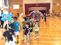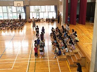 盛り上がった! 1年生を迎える会運営委員会の6年生を中心に楽しい迎える会が行われました。6年生と仲良く入場する1年生
