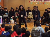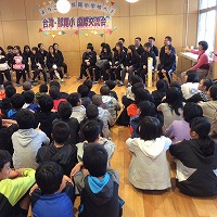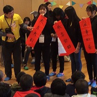 台湾人の中学3年生と引率教師の総勢31名が那覇小学校を訪れました。3校時はランチルームで台湾の紹介をして頂きました。クイズやポスターなどを使った発表で6年生も楽しく参加していました。質問タイムでは、質問をした児童にプレゼントがあることから、たくさんの6年生が挙手して質問する様子も見ることができました。