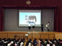 本日、社会福祉協議会事務局長の山城さんと宮里さんへ本校で集まった募金、総額50,140円を贈呈しました。贈呈後、山城さんより感謝状とお礼のお言葉を頂きました。お話の中で、赤い羽根共同募金は、①地域の見守り活動 ②地域の3世代交流活動 ③施設の修繕費用 ④災害時の義援金として役立てられているということでした。