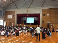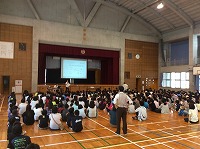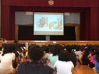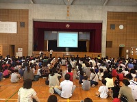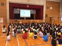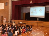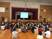 5月19日(日)に日曜参観が行われました。大勢の保護者に参観して頂き、子ども達は生き生きとした表情で授業に参加していました。また、eネットキャラバン事業の一貫で正しいスマホの使い方を保護者同伴で学びました。他にも体育館で読み聞かせも行われました。