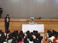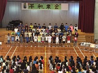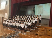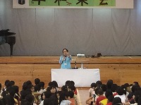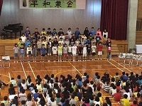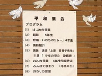6月25日(火)3・4校時に平和集会が行われました。平和を願う思いを、5年生は群読で、6年生は歌に込めて伝えました。その後、講師の上原美智子さんによる講話をしっかり聴きました。当時3年生だった上原さんは、これからの未来を生きる子ども達に、二度と戦争をくり返さないよう魂を込めてお話ししてくれました。