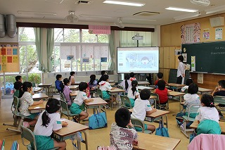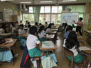 訓練では大きな地震が来た後、 津波警報が出たことを想定し、 地震や津波の恐ろしさや避難の仕方、 学校にいるときに地震や津波が起きた場合には、 どのように行動するのかをクラスで話し合いました。