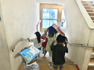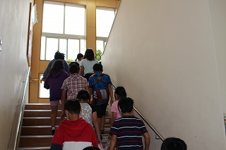 その後、実際に学校内の避難ルートを確認したり、 別のクラスや職員室との連絡・連携を 確認したりしました。 どの学年も真剣に取り組むことができていました。