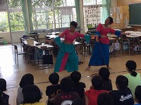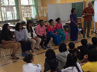 スリランカ国際交流会 ~スリランカを知ろうwith6年生~11月8日(金)2校時に本校6年生とスリランカからのお客様との交流会がありました。沖縄大学名誉教授ディリープ チャンドララール先生をはじめ、ティラカ ピヤシーリ先生、A・Gガミニ先生、スメダ ナワラトナカナ先生、学生のジャナニ ウッカルシャさん、カウシャルヤ アリヤダーサさん、アディティヤ ディサナヤカさん、イシャラ ワガセネウィさんの7名方々を招き、スリランカの文化について学びました。