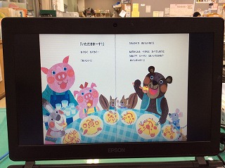 とはいっても、学校では感染予防のため全体集会ができません。 そこで、PCで編集しアナウンスを録音した読み聞かせを、 各教室で見てもらう方法をとりました。