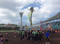 10月6日(日)セルラースタジアム那覇で、第14回「やる気・元気旗頭フェスタ」が開催されました。本校は、4月から旗頭クラブのメンバーを中心に本番に向けて練習してきました。また、練習と本番では、地域の方々のご協力もあり、見事な演技を披露することができました。学校・保護者・地域が一体となり、児童の成長を見守ることのできた素敵な一日となりました。