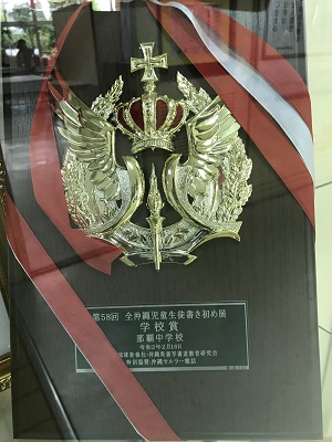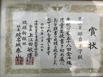 第58回全沖縄児童生徒書き初め展にて、みごと学校賞を受賞しました。