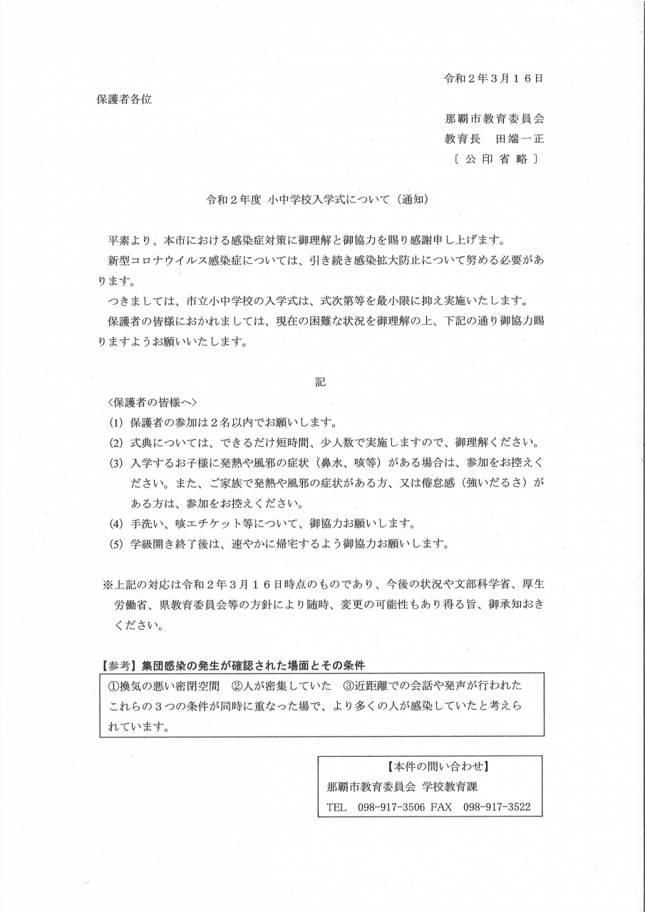 【保護者用】令和2年度小中学校入学式(那覇市教育委員会通知).pdf