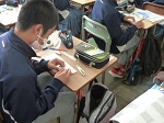 生徒達は、慣れない手つきでガーゼを縫い合わせ、マスク作成に奮闘していました。