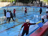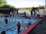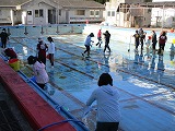 5月16日(木)に、先生方でプール清掃をしました。例年3年~6年生が掃除した後に、最後の仕上げとして先生方が清掃することになっています。日よけの設置や草刈りも行い、綺麗で快適なプールになりました。プールでの学習が楽しみですね。