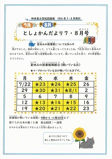 図書館だより(7・8月号)を載せました。「図書館からのお知らせ」からご覧ください。