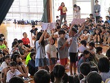5月10日(金)に、一年生を迎える会を開きました。一年生に喜んでもらうために、各学年が歌やダンスをしたり、手作りおもちゃを贈ったりしました。一年生は、各演目を見て一緒に踊り、皆笑顔で楽しんでいました。また、お礼として、校歌をプレゼントしました。今日は、仲井真っ子にとって素敵な日になりましたね。