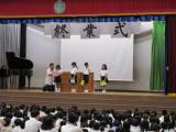 10月10日(金)に、一学期終業式を行いました。2年生と4年生の代表児童が、算数や体育、読書などたくさんの頑張ったことを発表しました。「運動会や音楽発表会を頑張りたいです。」と、二学期の目標を掲げる児童もいました。校長先生が一学期を振り返り、仲井真っ子の頑張りや取り組んできたことを褒めてくれました。